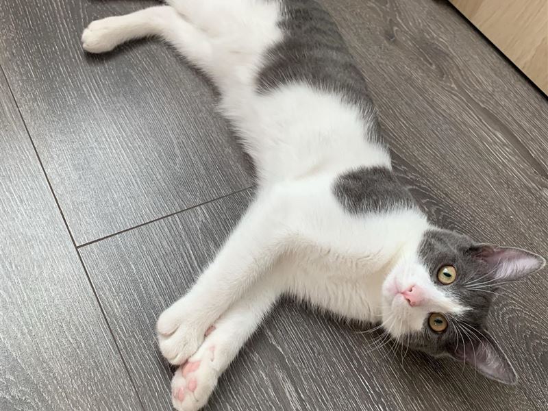 Этому очаровательному котёнку 5 месяцев (мальчик). Он невероятно ласковый, любопытный и игривый - всегда рад поиграть, но, также, любит полежать рядом и согреть своим мурчанием. Приучен к лотку