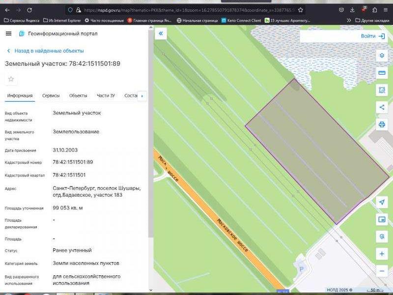 Продам коммерческий земельный участок 9,9 га у Московского шоссе в Шушарах